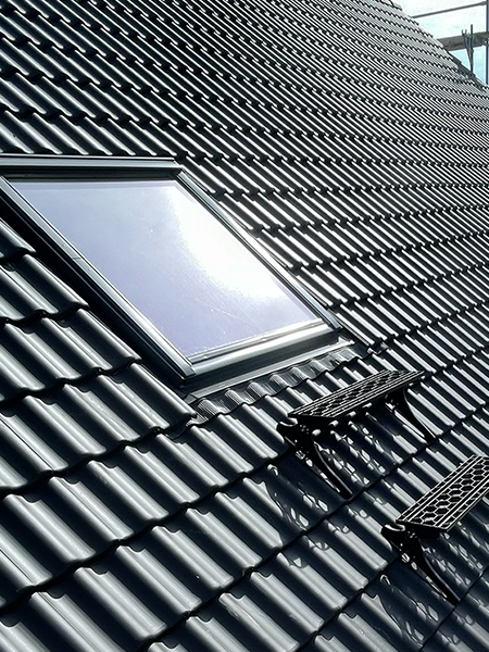 Dank der steilen Neigung fließt das Wasser problemlos ab, was das Risiko von Undichtigkeiten und Schäden am Dach minimiert. Darüber hinaus ermöglicht die Neigung eine bessere Belüftung des Dachraums, was wiederum die Bildung von Feuchtigkeit und Schimmel reduziert.